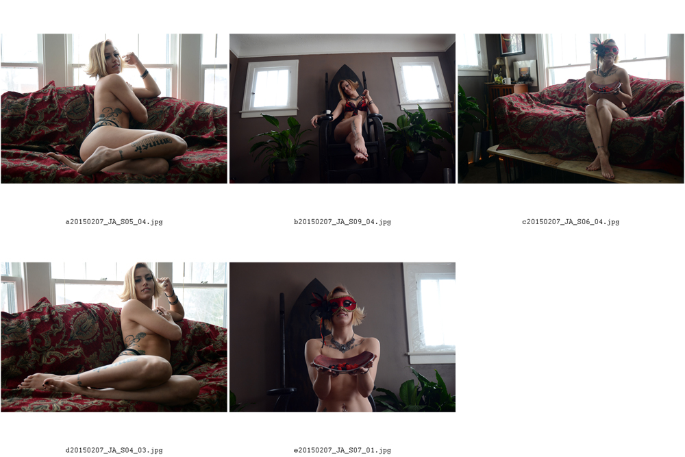 I shot with Jessica A for 39 minutes and ended up with 71 images over 9 sets.