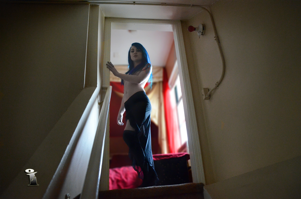 The room is the promised land and it’s almost with in reach but alas on the threshold Orpheus has turned and you are forever denied. Miai R’s arm is literally barring you from not only the room but from seeing her nudity. You as the viewer can go no further.